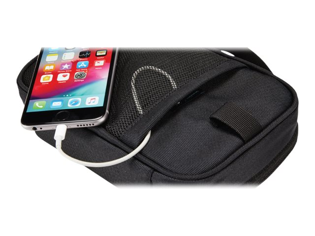 Un étui de voyage pour ranger et transporter un chargeur portable, des câbles et des accessoires.