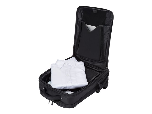 La séparation du système fit-all dans le compartiment ordinateur recouvre votre ordinateur, le protège et s'adapte automatiquement. La mousse légère en EVA perforée placée dans le compartiment verrouillable de l'ordinateur, protège parfaitement les angles de votre appareil, avec un énorme gain de poids. Tenue optimale pour votre ordinateur portable dans le compartiment, assurée par le revêtement anti-glisse. Protection idéale pour votre iPad ou tablette dans le compartiment formé en EVA avec doublure extra douce en nylex. Espace de rangement généreux pour une imprimante, un projecteur et des documents dans le compartiment extensible et le compartiment à fermeture éclair. La poche frontale avec porte-clé et compartiments de rangement organise vos ustensiles personnels et offre de la place pour d'autres accessoires mobiles. Le rembourrage ergonomique du dossier, les sangles réglables en longueur, la poignée confortable et la lanière de fixation assurent un confort de port optimal. Compartiment à fermeture éclair dissimulé pour papiers d'identité. Fond de la sacoche en matière étanche.