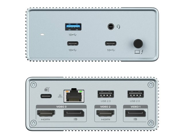 En outre, elle dispose de 12 ports intégrés pour tous vos appareils ou périphériques connectés et vous permet de vous connecter à des écrans étendus avec la flexibilité de 2 ports HDMI ou 2 DisplayPorts qui peuvent être utilisés de manière interchangeable.