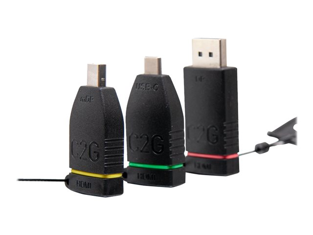 Description du produit C2G Retractable Table Box Mount 4K HDMI Adapter Ring with Color Coded Mini DisplayPort, DisplayPort, and USB-C - kit d'adaptateur vidéo - Mini DisplayPort / DisplayPort / HDMI / USB Câble Kit d'adaptateur vidéo - Mini DisplayPort / DisplayPort / HDMI / USB Nombre inclus 3 Couleur Noir Fonctions Support 4K Garantie du fabricant Garantie limitée à vie -