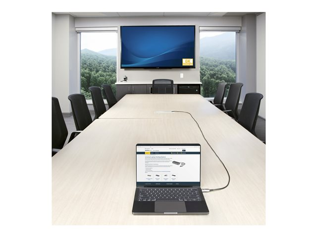 Routez ce Câble Optique Actif Hybride HDMI 2.1 Ultra Haut Débit à travers les espaces de plénum du bureau pour la transmission à longue distance de vidéos 8K à 60 Hz et d'un audio de haute qualité.