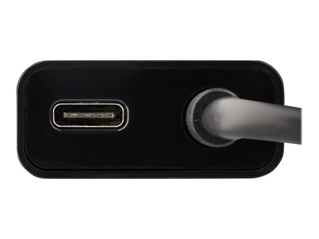 Cet adaptateur USB Type-C possède un boîtier entièrement noir et un câble USB-C intégré conçu pour s''adapter à votre Ultrabook ou à votre ordinateur portable. Cet adaptateur est compatible avec tous les appareils compatibles avec USB-C DP Alt Mode.