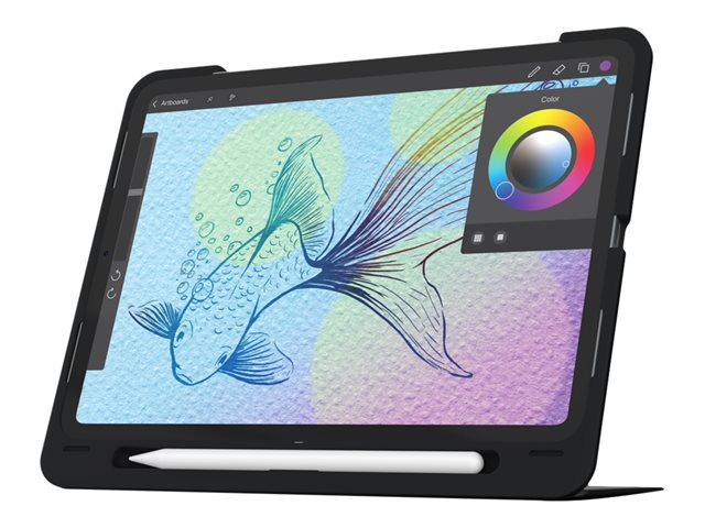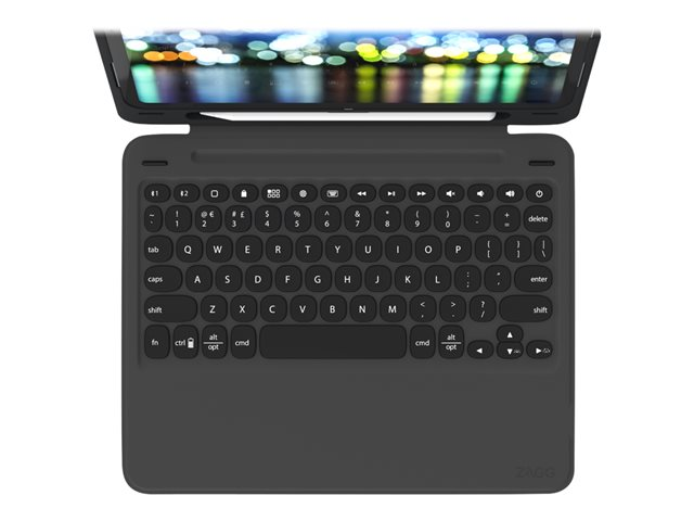 Description du produit ZAGG Slim Book Go - clavier et étui - Français - noir Périphérique d'entrée Type de périphérique Clavier et étui Rétroéclairé 7 couleurs Interface Bluetooth Localisation et disposition Français Couleur Noir clavier, noir étui Matière du boîtier Polycarbonate Dimensions (LxPxH) 24.8 cm x 20.5 cm x 2.01 cm Garantie du fabricant Garantie de 2 ans Conçu pour Apple 11-inch iPad Pro (1ère génération) -