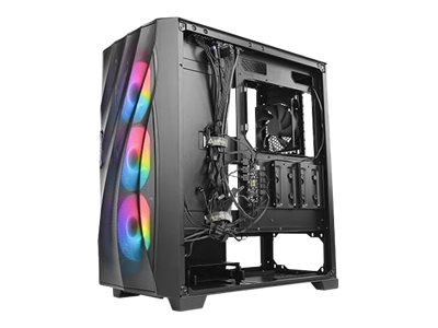 1 x casque téléphoniqueCartes mères prises en charge ATX, microATX, Mini-ITX Fonctionnalités du boîtier système Panneau frontal maillé, capable d'accueillir un radiateur de 120 mm à l'arrière, filtre antipoussière sur la partie inférieure, filtre à poussière supérieur magnétique, emplacement pour radiateur 240/280/360 mm sur la partie supérieure, emplacement pour radiateur 240/280/360 mm sur le panneau avant, contrôleur de ventilateur RGB, bouton de contrôle LED, filtre à poussière magnétique latéral Périphérique d'alimentation Pas d'alimentation Dimensions (LxPxH) 22 cm x 46.7 cm x 48.6 cm Poids 7.4 kg Garantie du fabricant Garantie de 2 ans -