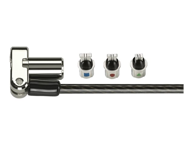 Description du produit Kensington Universel Serrure à clé pour ordinateur portable 3 en 1 - câble de sécurité Type de produit Câble de sécurité Matériau du produit Acier au carbone Longueur 1.8 m Caractéristiques Passe-partout, broche cachée, avec attache, pivotant, 5mm Keying System, réglage en rotation, Register & Retrieve Garantie du fabricant Garantie de 5 ans -