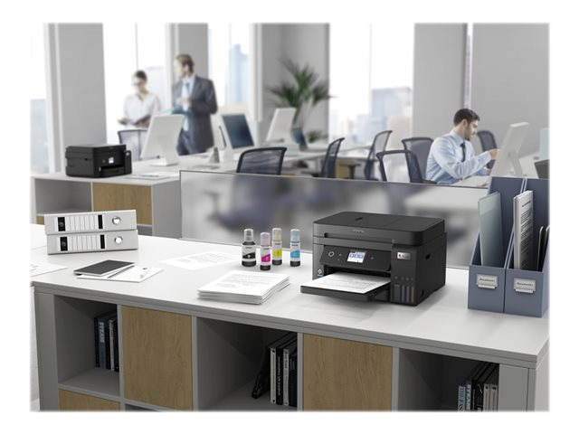 Économisez jusqu'à 90 % sur le coût de l'encre avec les imprimantes multifonction Epson EcoTank sans cartouches. Fournie avec des bouteilles d'encre haute capacité, ses réservoirs d'encre intégrés sont faciles à remplir grâce aux bouteilles d'encre spécialement conçues. Sans aucune cartouche à remplacer et dotée de fonctionnalités de connectivité flexibles, d'un fax et d'un chargeur automatique de documents, cette imprimante multifonction est idéale pour les personnes qui recherchent des impressions de haute qualité et un coût par page très bas.