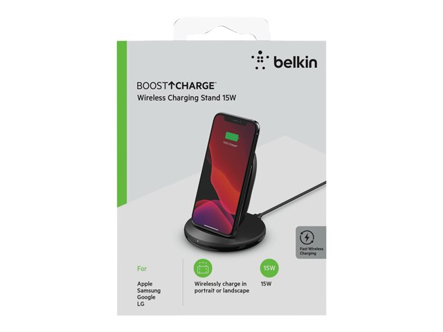 Description du produit Belkin BOOST CHARGE plot de charge sans fil - + adaptateur secteur - 15 Watt Description du produit Belkin BOOST CHARGE plot de charge sans fil - + adaptateur secteur - 15 Watt Type de Produit Plot de charge sans fil + adaptateur secteur Type de Produit Plot de charge sans fil + adaptateur secteur Couleur Noir Couleur Noir Normes de recharge sans fil Qi Normes de recharge sans fil Qi Alimentation fournie 15 Watt Alimentation fournie 15 Watt Garantie du fabricant Garantie de 2 ans Garantie du fabricant Garantie de 2 ans Conçu pour Apple iPhone 11, 11 Pro, 11 Pro Max, 8, 8 Plus, X, XR, XS, XS Max; Samsung Galaxy Note10, Note10+, S10, S10+, S10e Conçu pour Apple iPhone 11, 11 Pro, 11 Pro Max, 8, 8 Plus, X, XR, XS, XS Max; Samsung Galaxy Note10, Note10+, S10, S10+, S10e -