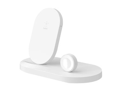 Support de chargement sans fil + adaptateur secteur (USB) - blanc - pour Apple iPhone 8, 8 Plus, X, XR, XS, XS Max; Watch
