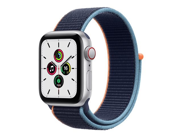 40 mm - aluminium argenté - montre intelligente avec boucle sport - nylon - marine profond - taille du poignet : 130-200 mm - 32 Go - Wi-Fi, Bluetooth - 4G - 30.68 g