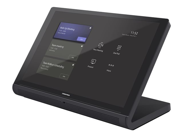 Description du produit Crestron Flex UC-BX30-T - for Small Microsoft Teams Rooms - kit de vidéo-conférence Type de périphérique Kit de vidéo-conférence Contenu du kit Barre son, console d'écran tactile, mini PC Affichage 10.1" TFT / 1920 x 1200 Entrée vidéo Appareil photo numérique Sortie vidéo Carte CODEC Entrée audio Microphone Sortie audio Haut-parleur(s) - stéreo Périphérique d'entrée Écran tactile de 10,1" (filaire) Réseaux Adaptateur réseau - Ethernet, Fast Ethernet -