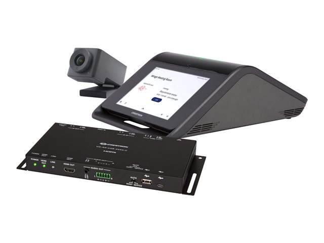Description du produit Crestron Flex UC-MX50-U - kit de vidéo-conférence Type de périphérique Kit de vidéo-conférence Contenu du kit Camera, console d'écran tactile, récepteur Protocoles VoIP SIP, SDP Codec G.711, G.722, G.729 Entrée vidéo Caméra vidéo numérique - USB 3.1 Entrée audio Microphone quadribande Sortie audio Haut-parleur(s) - mono Réseaux Adaptateur réseau - Ethernet, Fast Ethernet, Bluetooth 4.0 Alimentation CA 120/230 V (50/60 Hz) -