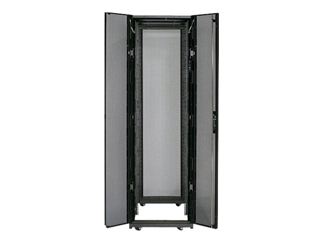 Armoires informatiques riches en fonctionnalités optimisées pour l'architecture en rangées InfraStruxure, la gestion des câbles, la distribution d'alimentation ainsi qu'une circulation d'air optimale.