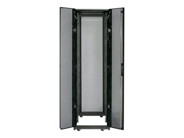 Armoires informatiques riches en fonctionnalités optimisées pour l'architecture en rangées InfraStruxure, la gestion des câbles, la distribution d'alimentation ainsi qu'une circulation d'air optimale.