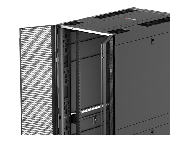 Armoires informatiques riches en fonctionnalités optimisées pour l'architecture en rangées InfraStruxure, la gestion des câbles, la distribution d'alimentation ainsi qu'une circulation d'air optimale.