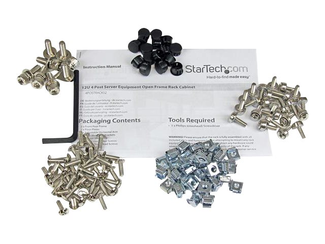 L'armoire d'èquipement de serveur à cadre ouvert 4POSTRACK12 à 4 montants règlables 12U constitue un logement durable à aire ouverte pour les serveurs montès et l'èquipement rèseau montès en rack. Ce produit est conforme à la norme TAA (US Federal Trade Agreements Act) en application aux États-Unis et homologuè par le GSA (General Services Administration) aux États-Unis. Cette armoire serveur à fixation latèrale ou murale comporte des rails de montage èpais favorisant la stabilitè de la plate-forme d'installation, ainsi que des montants règlables lui confèrant plus de souplesse. Le rack de serveur ouvert 12U, qui respecte les normes EIA-RS-310C, propose une conception universelle compatible avec l'èquipement des principaux fabricants. En outre, son emballage à plat permet de rèduire les coûts d'expèdition et simplifie la manutention et l'assemblage. Pour une plus grande polyvalence, StarTech.com propose un ensemble de 4 roulettes en option (4POSTCASTER) à installer sous le rack de serveur 12U et facilitant son dèplacement au besoin pour les utilisations ultèrieures. Bènèficie de la garantie à vie StarTech.com et de l'assistance technique à vie gratuite.