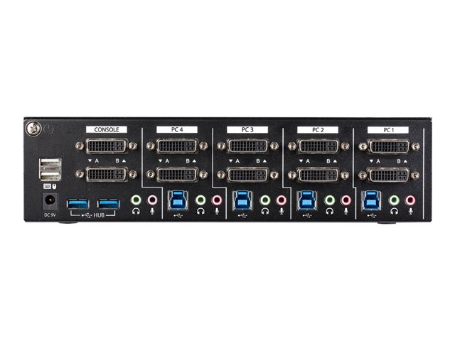 Le commutateur KVM prend en charge quatre systèmes informatiques multimédia séparés et l'utilisation d'un poste de travail à double moniteur DVI Dual Link, augmentant ainsi la productivité en vous permettant d'accéder à plus d'informations en même temps.